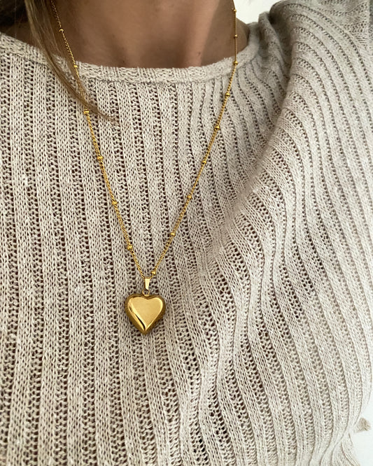 Collar largo cadena bolitas con colgante grande corazón en acero baño oro Corazón Grande