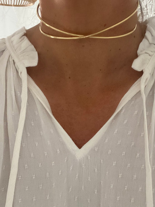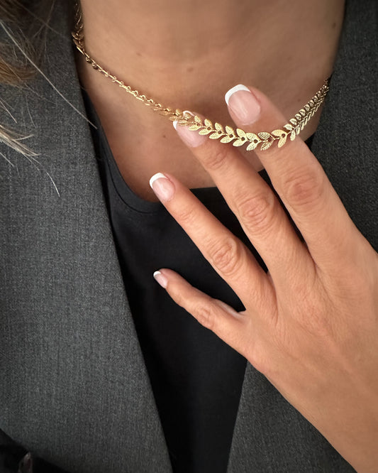 Cadena corta estilo espigas en acero baño oro 18K Cesar