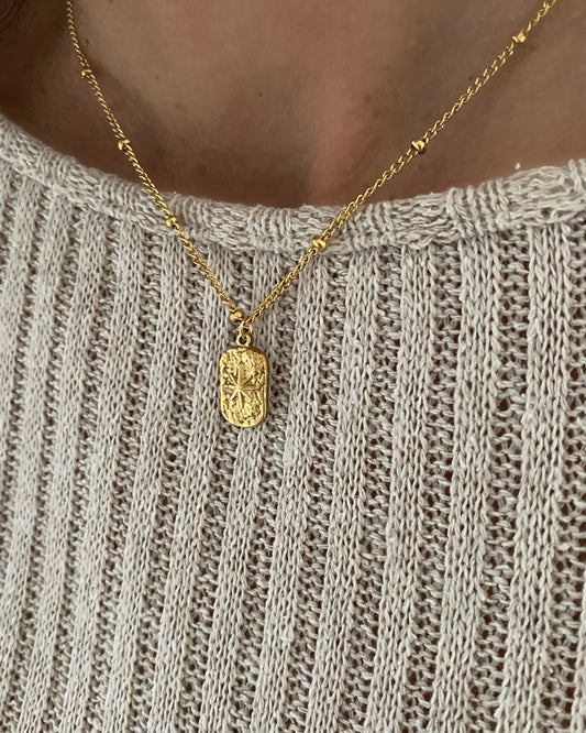 Collar con cadena de bolitas y colgante textura estrella en acero acabado oro Estrella De Oriente