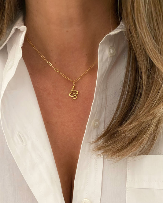 Collar cadena eslabones pequeños con colgante forma serpiente en acero acabado oro Serpens