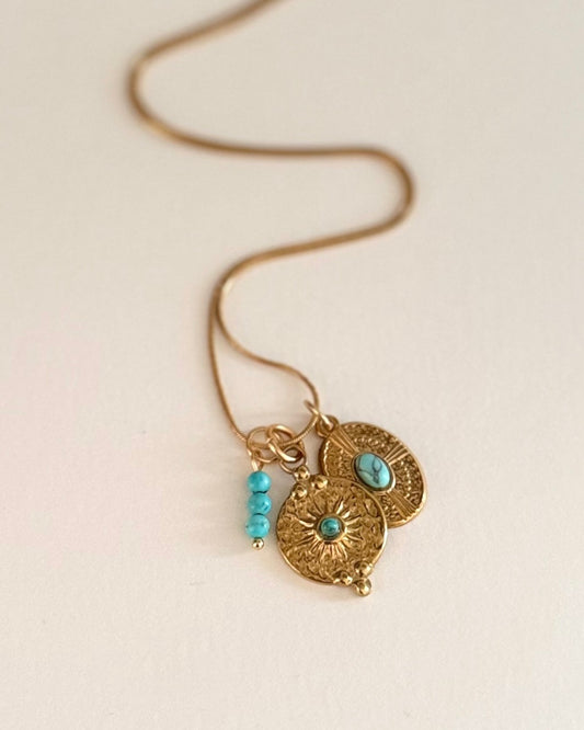 Collar con doble colgante estilo bohemio bañado en oro 18K MARTELLE