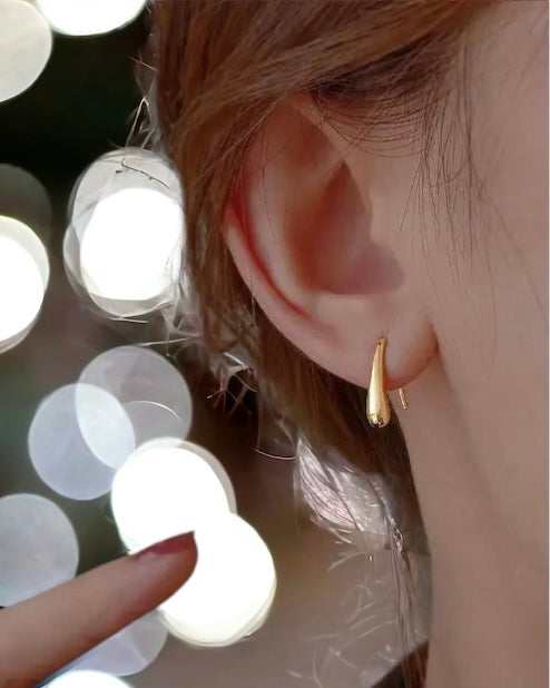 Pendientes diseño gota en acero con baño de oro 18k Rain