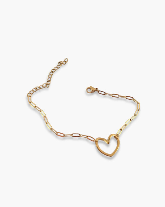 Pulsera cadena charm corazón en acero inoxidable baño oro 18K Corazón