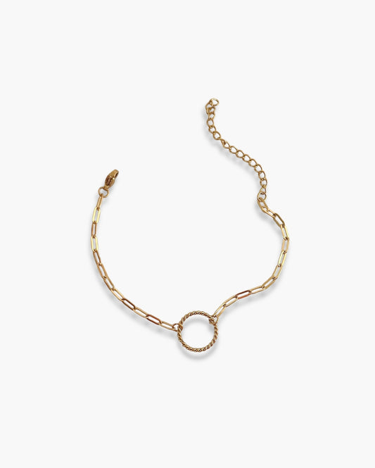 Pulsera cadena entrepieza círculo en acero baño oro 18K Círculo