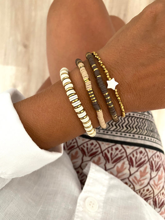 Pulsera cuentas disco tonos blanco y oro Mykonos Blanca