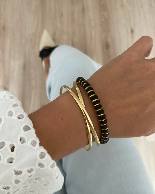 Brazalete ajustable bandas cruzadas en acero inoxidable baño de oro 18K Lia