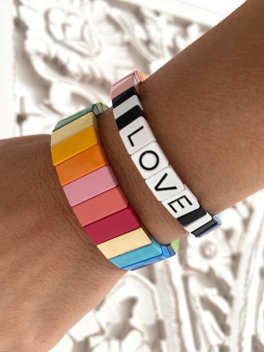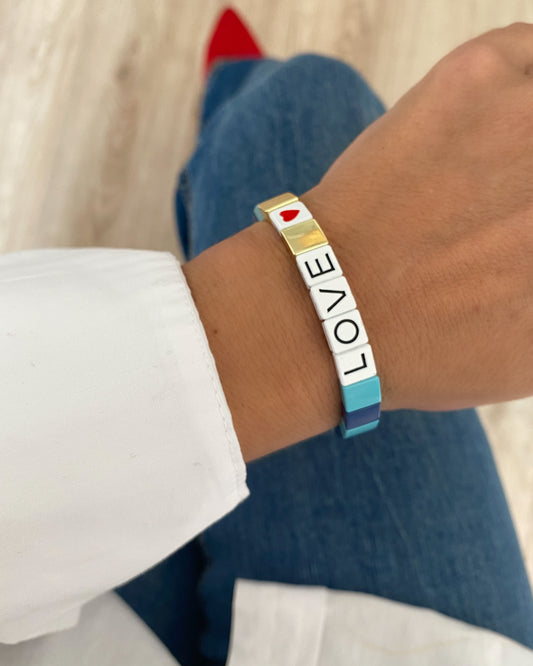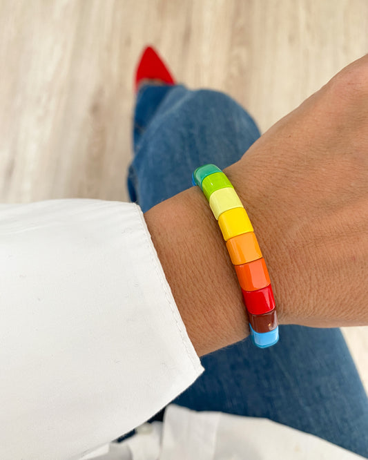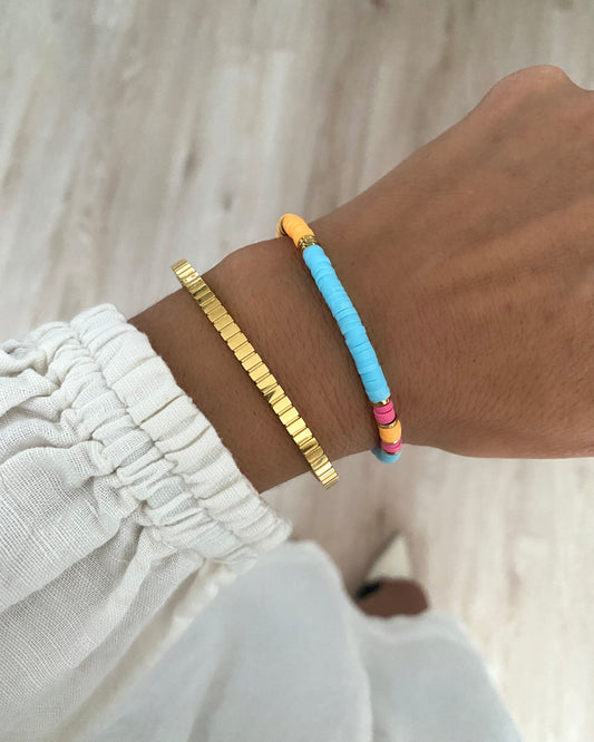 Pulsera abalorios colores y piedra natural acabado acero baño oro Tubbie
