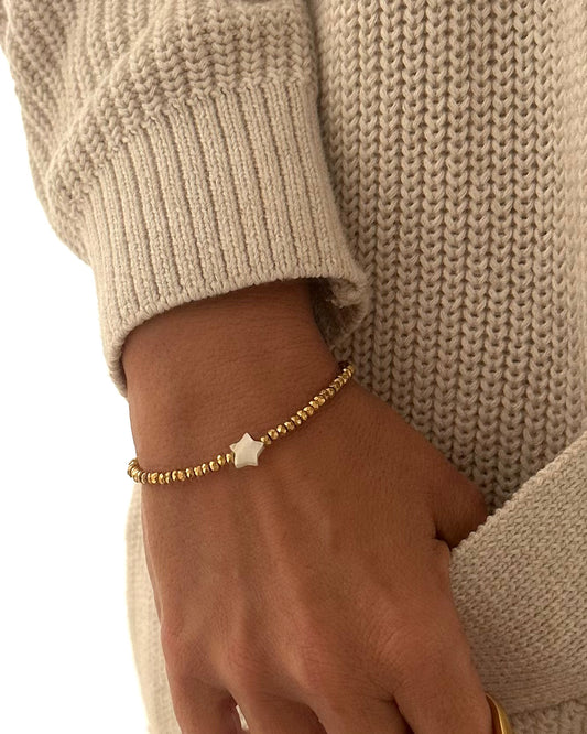 Pulsera hematita dorada detalle estrella de nacar, acabado acero oro Estela
