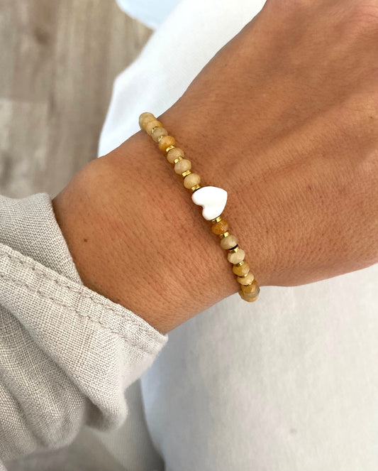 Pulsera cuentas agata detalle corazon de nácar Amy