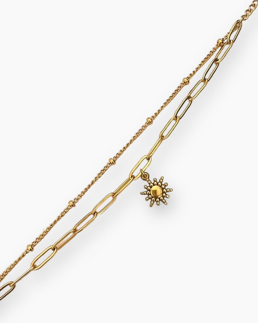 Pulsera doble cadena charm sin en acero baño oro 18K Doble sol