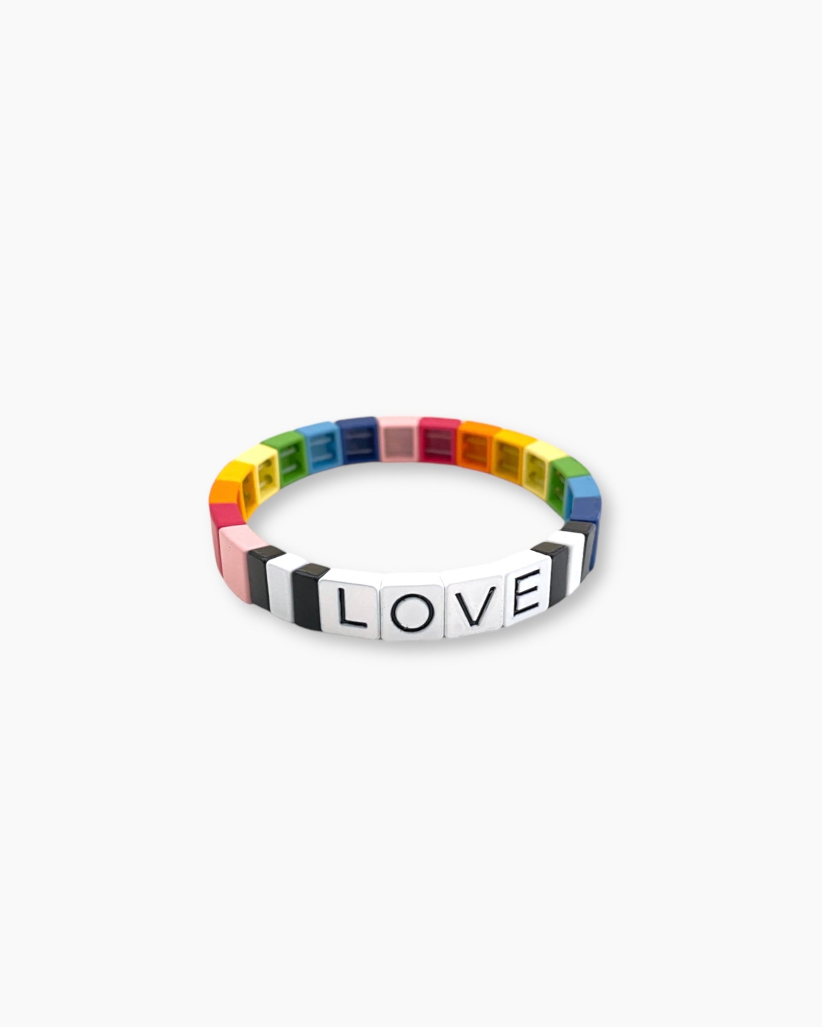 La PULSERA BLOCK LOVE COLORES es una de las pulseras hechas a mano con materiales de alta calidad y diseño único. La PULSERA BLOCK LOVE COLORES está hecha con cuentas de metal enamel en varios colores, y cuenta con la palabra "LOVE" en letras mayúsculas para añadir un toque de estilo y significado.