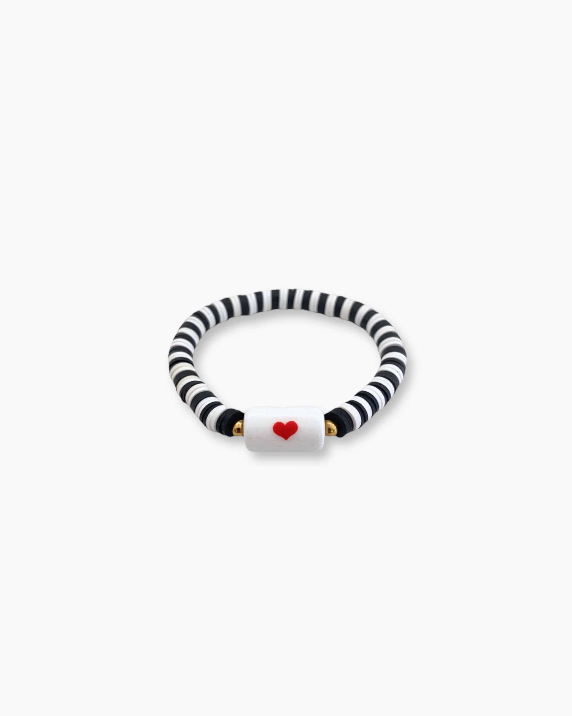 ¿Buscas una PULSERA original y moderna que complemente tu estilo? Nuestra PULSERA CERAMICA CORAZON es elástica con cuentas de arcilla polimérica en blanco y negro es justo lo que necesitas. Cada CUENTA está hecha a mano con mucho cuidado para asegurar su calidad y durabilidad.