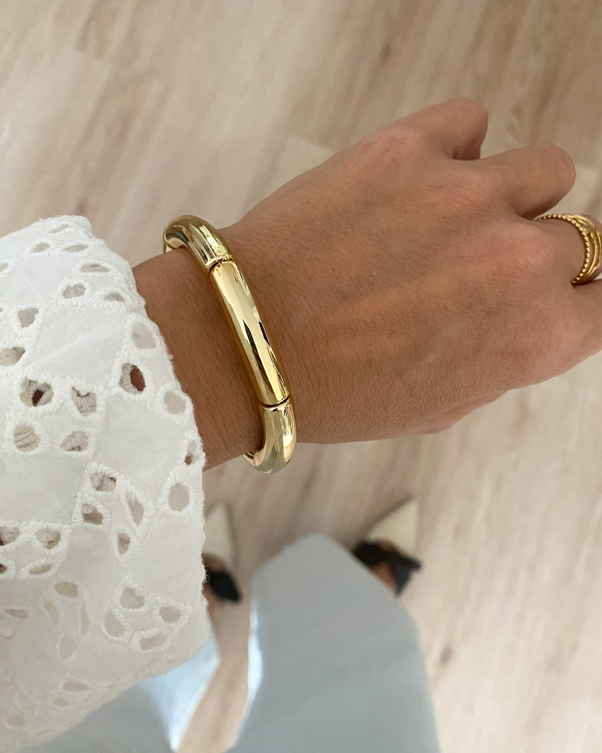 La PULSERA TUBE es perfecta para cualquier ocasión, ya sea para añadir un toque de elegancia a un outfit formal o para complementar un look más casual. Úsala sola o combínala con otras pulseras para crear un look único y personalizado.